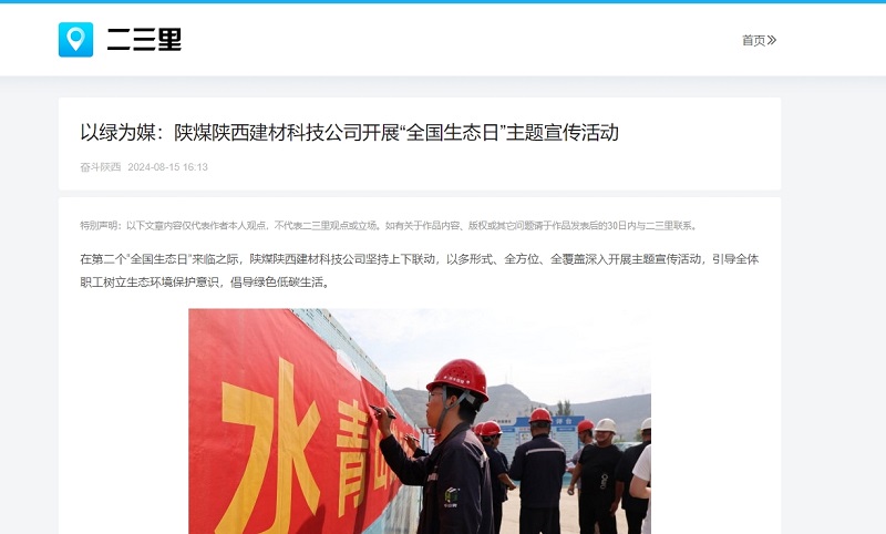 今日頭條、二三里 | 以綠為媒:陜煤陜西建材科技公司開(kāi)展“全國生態(tài)日”主題宣傳活動(dòng)