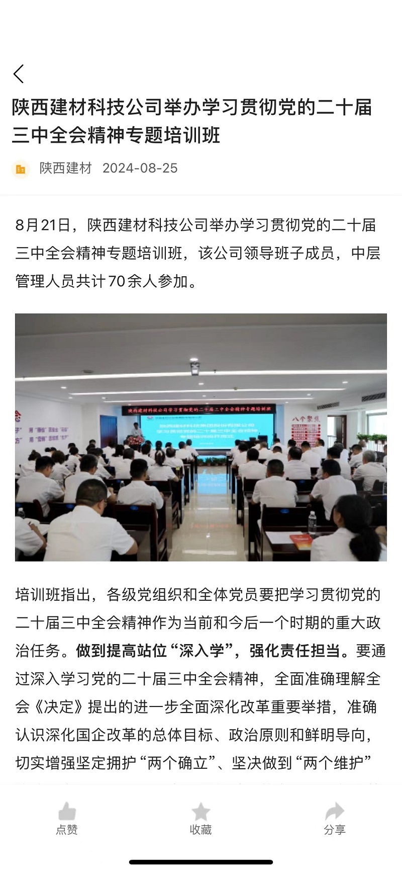 奮進(jìn)陜煤 | 陜西建材科技公司舉辦學(xué)習貫徹黨的二十屆三中全會(huì )精神專(zhuān)題培訓班
